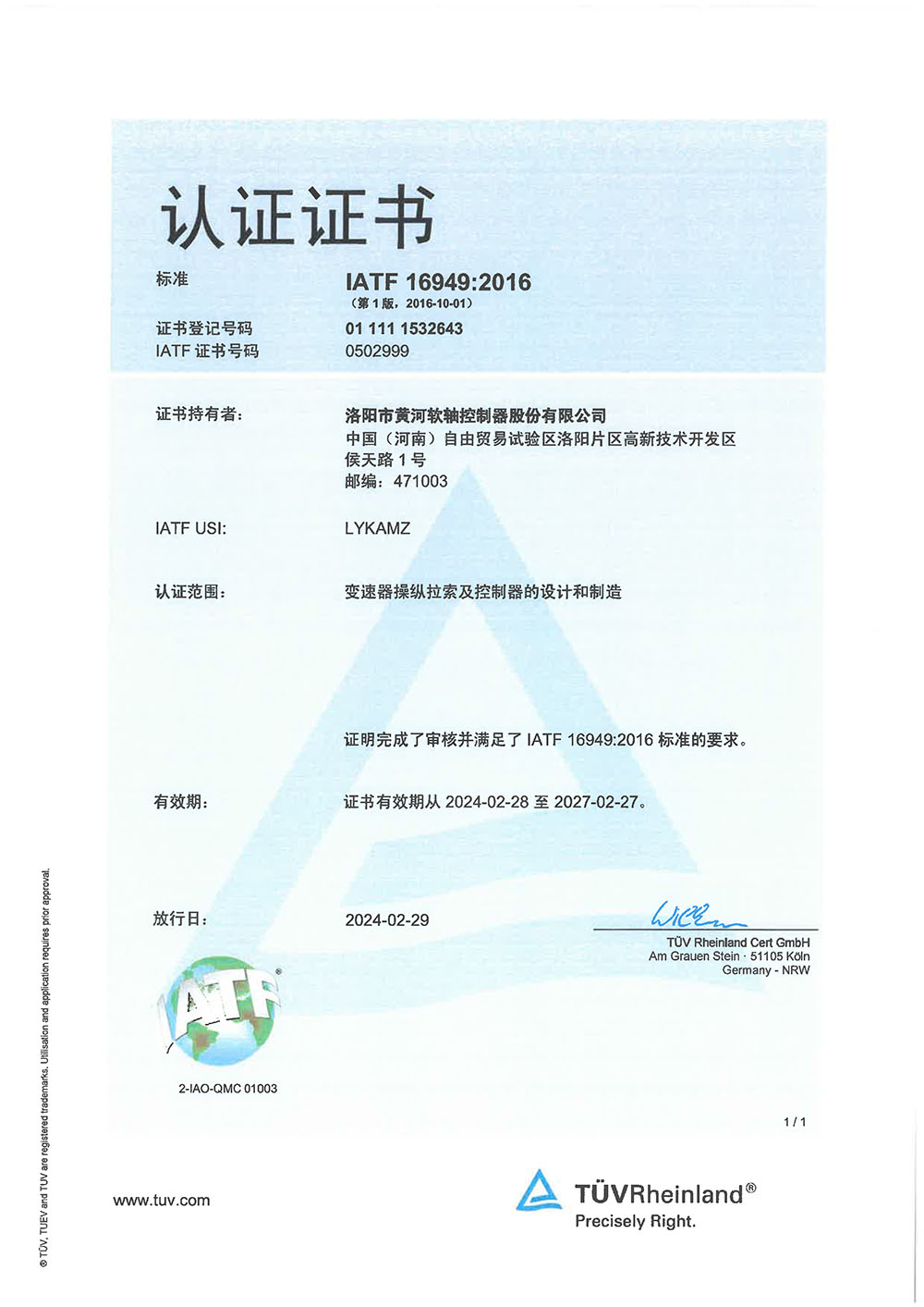 質(zhì)量管理體系認證證書